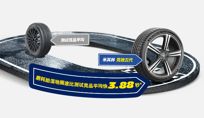 米其林 競馳5 磨耗胎濕地圈速比測試競品平均值快 3.88 秒*